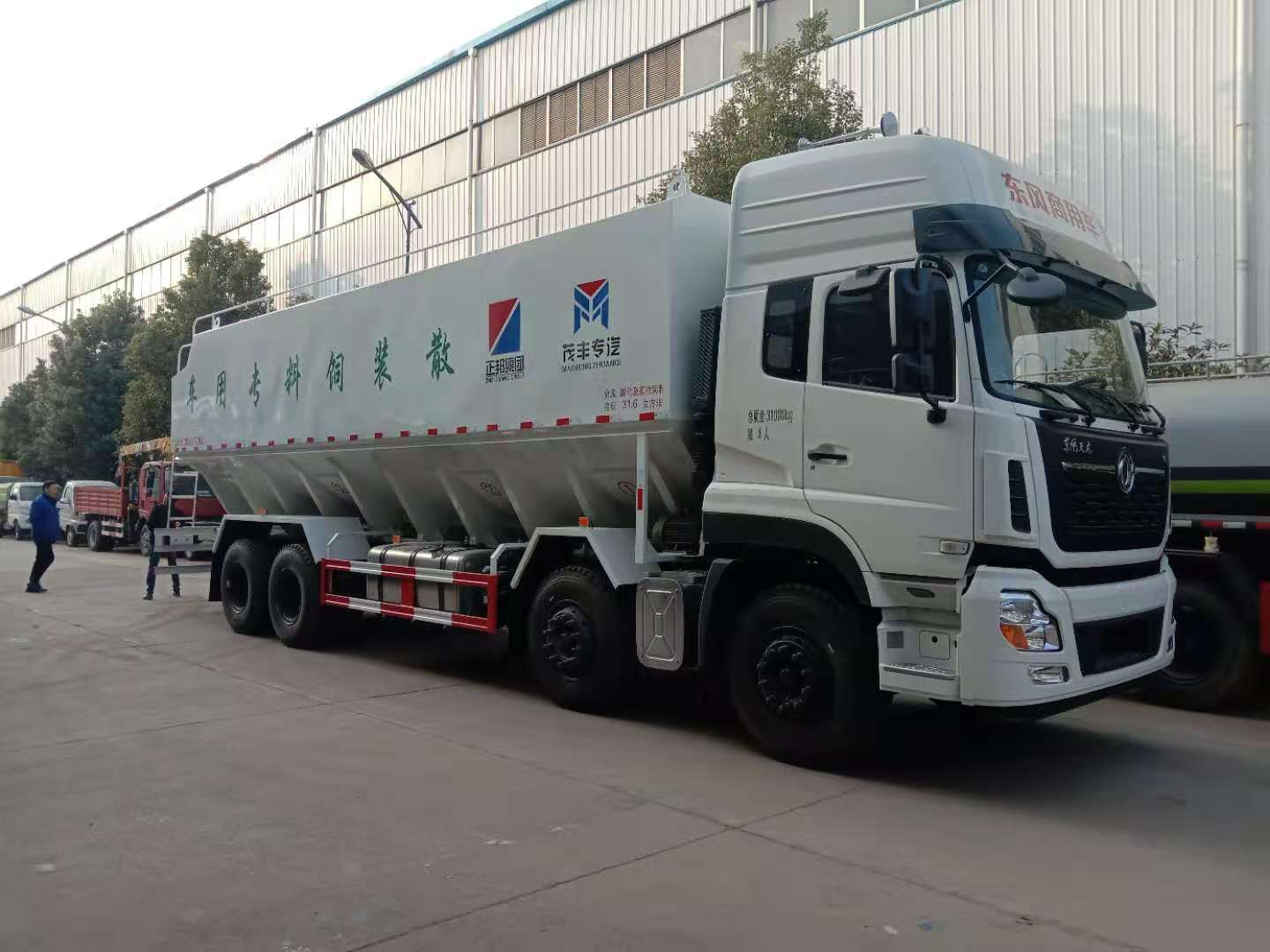 東風(fēng)天龍前四后八高頂雙臥新款豪華駕駛室,康明斯6缸315馬力/雷諾350馬力發(fā)動(dòng)機(jī),法士特12檔變速箱,1850+4600+1350mm/2050+4400+1350mm軸距,11.00R20鋼絲胎,電動(dòng)門窗,中控門鎖,原廠空調(diào),ABS,方向助力,行車記錄儀,氣囊座椅,斷氣剎;上裝罐體容積約40立方,罐體采用4mm優(yōu)質(zhì)碳鋼板制作,罐體內(nèi)分為肆個(gè)倉,可獨(dú)立控制各分倉卸料順序和速度,整車3條蛟龍(底部水平絞龍、尾部垂直絞龍、頂部卸料絞龍),由3個(gè)5.5kw 380v電機(jī)帶動(dòng)各絞龍工作,頂部絞龍液壓控制舉升,可左右旋轉(zhuǎn)180°,整車尺寸:12000×2500×3995mm