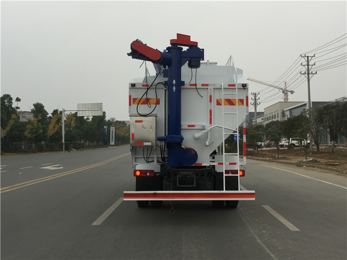 上裝罐體:罐體材質(zhì)采用4mm優(yōu)質(zhì)碳鋼板,整車3條絞龍,由3個(gè)5.5KW電機(jī)380V外接電源帶動(dòng),頂部絞龍用液壓控制舉升,可左右旋轉(zhuǎn)180°。罐體內(nèi)分為叁個(gè)倉(cāng),可以獨(dú)立控制各分倉(cāng)卸料順序和速度。(備注:此報(bào)價(jià)為標(biāo)配,國(guó)產(chǎn)電機(jī),德力西電柜)