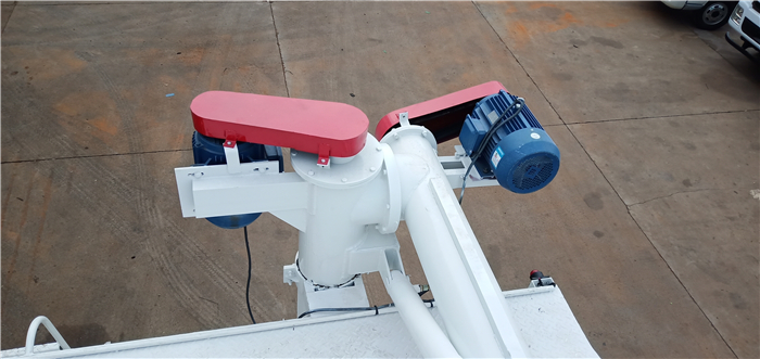 上裝罐體:罐體材質采用4mm優(yōu)質碳鋼板,整車3條絞龍,由3個5.5KW電機380V外接電源帶動頂部絞龍用液壓控制舉升,可左右旋轉180°。罐體內分為四個倉,可以獨立控制各分倉卸料順序和速度。(備注:此報價為標配,國產(chǎn)電機,德力西電柜)