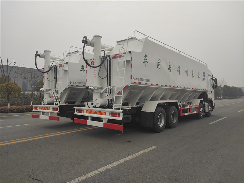 2、散裝飼料在罐體內(nèi)密封輸送,減少損失,保證質(zhì)量,避免污染。全自動上料卸料,可連續(xù)作業(yè),大大提高生產(chǎn)效率。人工袋包裝10噸飼料光裝卸就要消耗將近160分鐘的時間,而散裝飼料運輸車只需20分鐘左右裝卸完成10噸飼料。